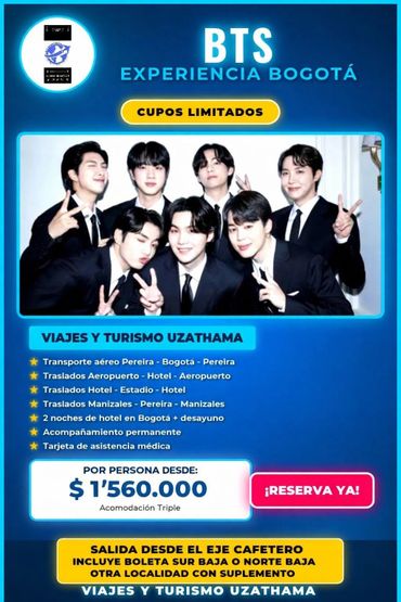 Los pagos o abonos a planes, tiquetes, porción terrestre o cualquier producto ofertado por nosotros, SOLO se reciben por transferencia a la Cuenta de Ahorros Bancolombia No. 623-0000632-4 a nombre de VIAJES Y TURISMO UZATHAMA S.A.S. NIT 901.917.993-3. Pagos a través de BreB a la Llave 3216787022 cuenta de Ahorros BOLD CF a nombre de VIAJES Y TURISMO UZATHAMA S.A.S. NIT 901.917.993-3 y/o a través de link de pago de BOLD Ó EPAYCO (en caso de Tarjetas crédito o débito, de no poder hacerlo de manera presencial) enviado a través de nuestros correos corporativos únicamente, o de los WhatApp oficiales. Cualquier consulta puede realizarla antes del pago y/o Reserva al correo admon@viajesyturismouzathama.com o al WhatsApp +573161600681 para verificar la legalidad del pago a realizar o del Producto a adquirir. NO son válidos los enviados a cualquier otro número o billetera digital diferente a nombre de Personas Naturales. Pagos internacionales aceptados a través de PAYPAL.